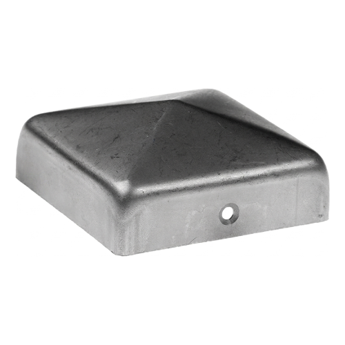 Chapeau de poteau d'enveloppe en acier avec rebord haut destiné à être installé sur des poteaux de clôture de section 20×20 mm. Il protège efficacement l'extrémité du poteau contre la pluie, la neige et la corrosion, prolongeant ainsi la durée de vie de toute la structure de clôture. Produit livré à l'état brut — permet une finition personnalisée (peinture poudre, laquage ou galvanisation), vous permettant d'adapter la couleur du chapeau à celle de la clôture.