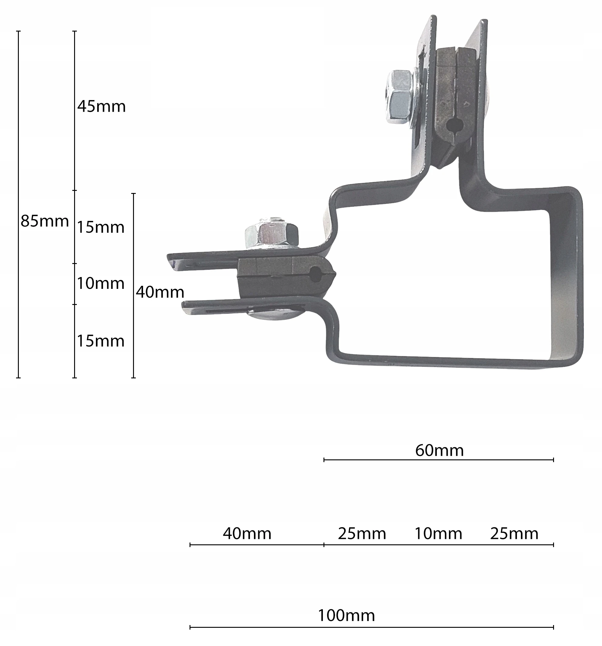 Compatible avec les poteaux de section 40x60 mm. Fabriqué en acier galvanisé, résistant à la corrosion et aux conditions atmosphériques.