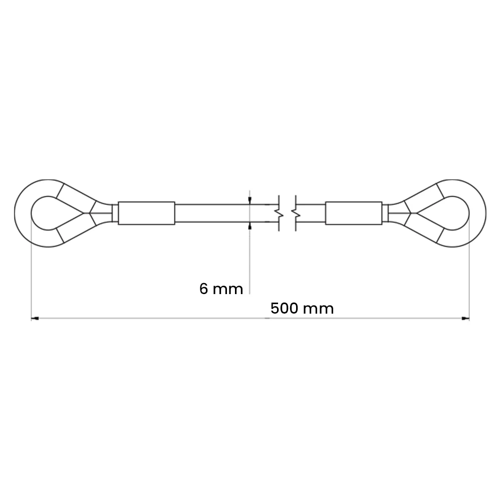 Fabriqué en acier galvanisé, le câble résiste à la corrosion et aux conditions atmosphériques, conservant ainsi sa pleine résistance pendant des années d'exploitation en extérieur. Les deux extrémités sont équipées de cosses en acier (œillets avec inserts métalliques), qui protègent le câble contre l'usure et la déformation aux points de fixation — cette solution prolonge considérablement la durée de vie de toute la sécurité.