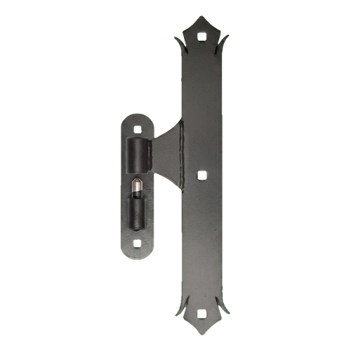 La paumelle est destinée au montage professionnel de portails battants — aussi bien en bois qu'en acier. Sa forme décorative s'harmonise parfaitement avec les portails de caractère traditionnel, rustique ou de ferronnerie. Grâce à sa construction solide et son poids de 1,64 kg, elle assure un support stable même pour les vantaux lourds de portail.